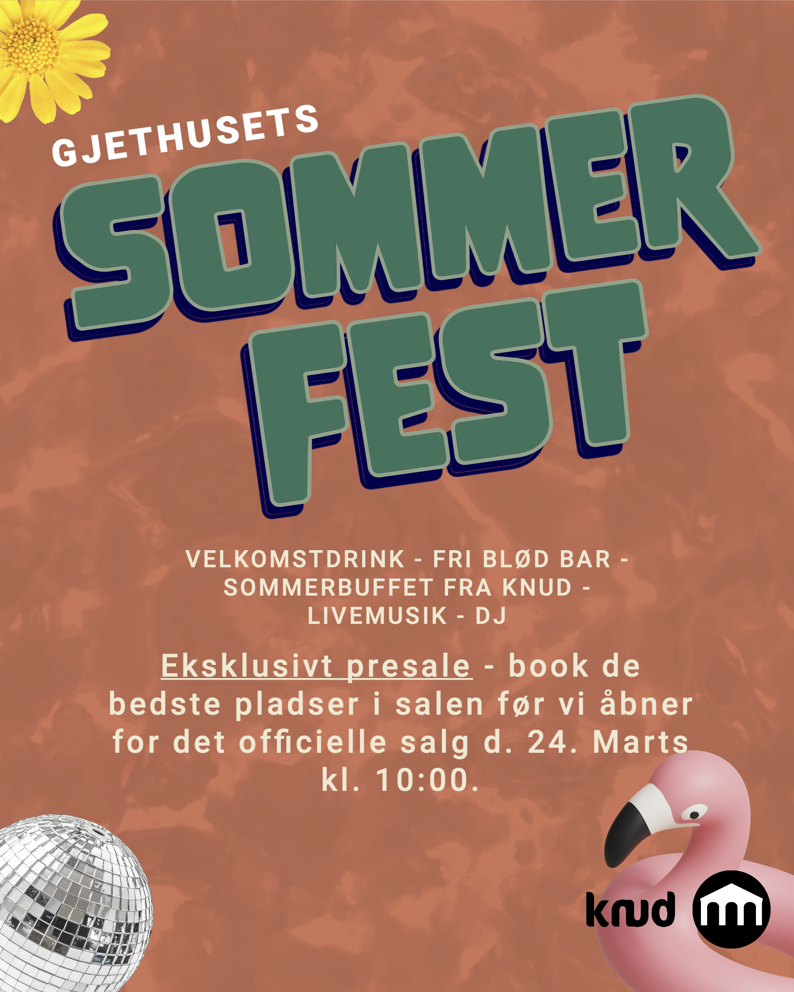 Gjethusets Sommerfest byder på en festlig og stemningsfuld aften i skønne omgivelser – perfekt til kollegaer, kunder eller venner.